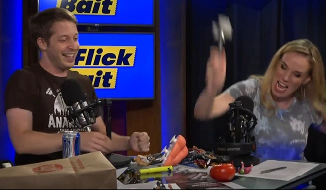 Flick Bait was ostensibly created to satirize click bait culture, though it's debatable whether it ever actually achieved this aim. It had an informal, often farcical vibe. Part of the show's appeal was the frequent clumsiness of the hastily-thrown-together comedy bits. None of the hosts knew anything about each other's comedy bits until they were performed live during the show. The hosts frequently ridiculed one another for their ineptitude. Flick Bait was easily the most divisive show in the history of Screen Junkies, for both viewers and hosts alike.