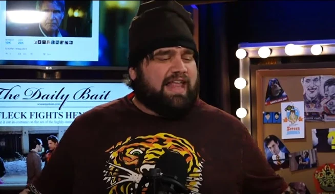 Constructive Criticism - Joe's segment. A game. Joe went back through the Screen Junkies comments to find mean comments about all four hosts. The others must guess who each comment is about. Comments include: Dan's style is that of an 8-year-old 90's kid; Spencer is overrated and pompous; and Joe is a massive scrotum. Meanwhile, Ken Napzok gives Spencer and Andy a lotion-heavy back rub.