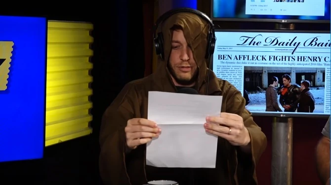 Scoops McGee – Dan's segment. (WINNER) The first appearance of shady film journalist Scoops McGee, who regularly hides in dumpsters and files lawsuits in the state of Nevada to get the best entertainment scoops in town! This episode's scoops: Ben Affleck Bags Bat Brother?! Poe Dameron Courts Avatar’s Cameron?! Fat Falls Flat After Bat Spat?!