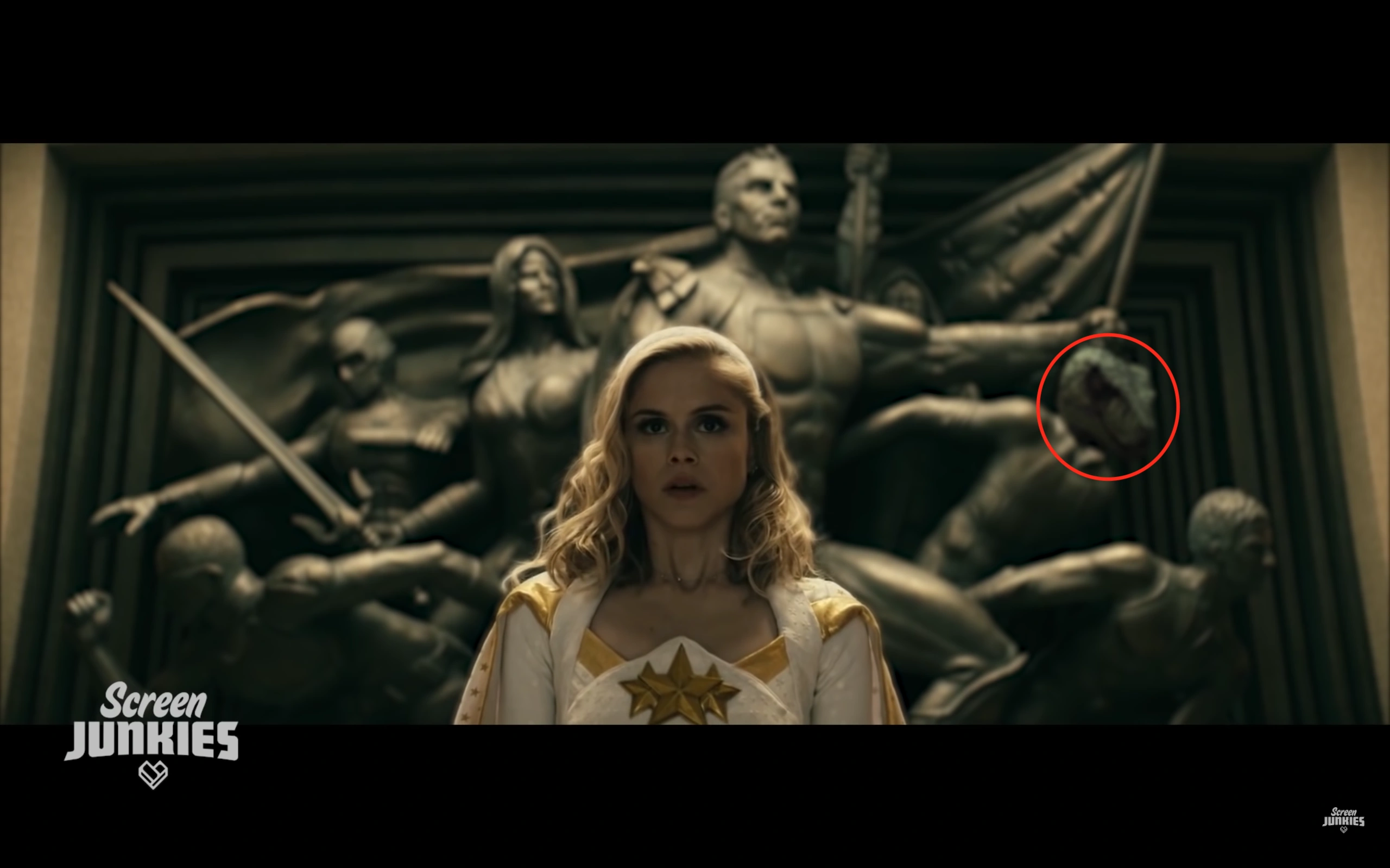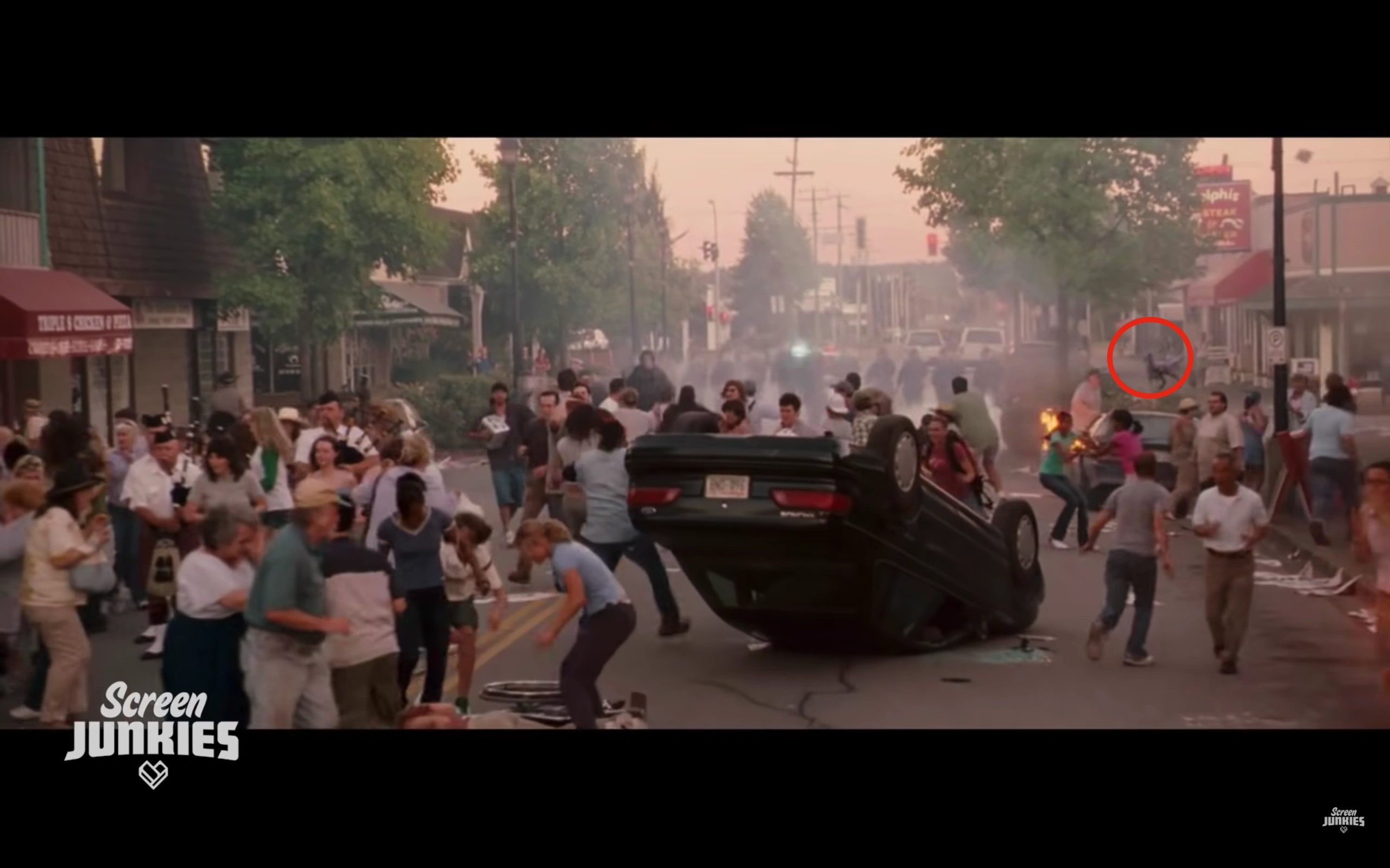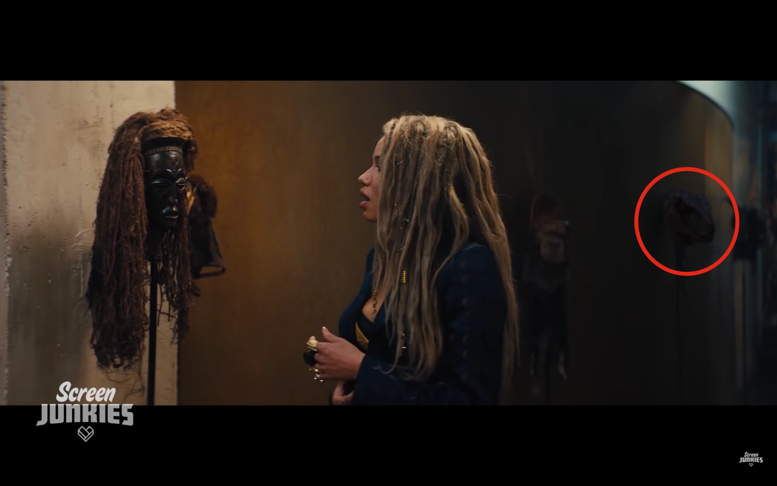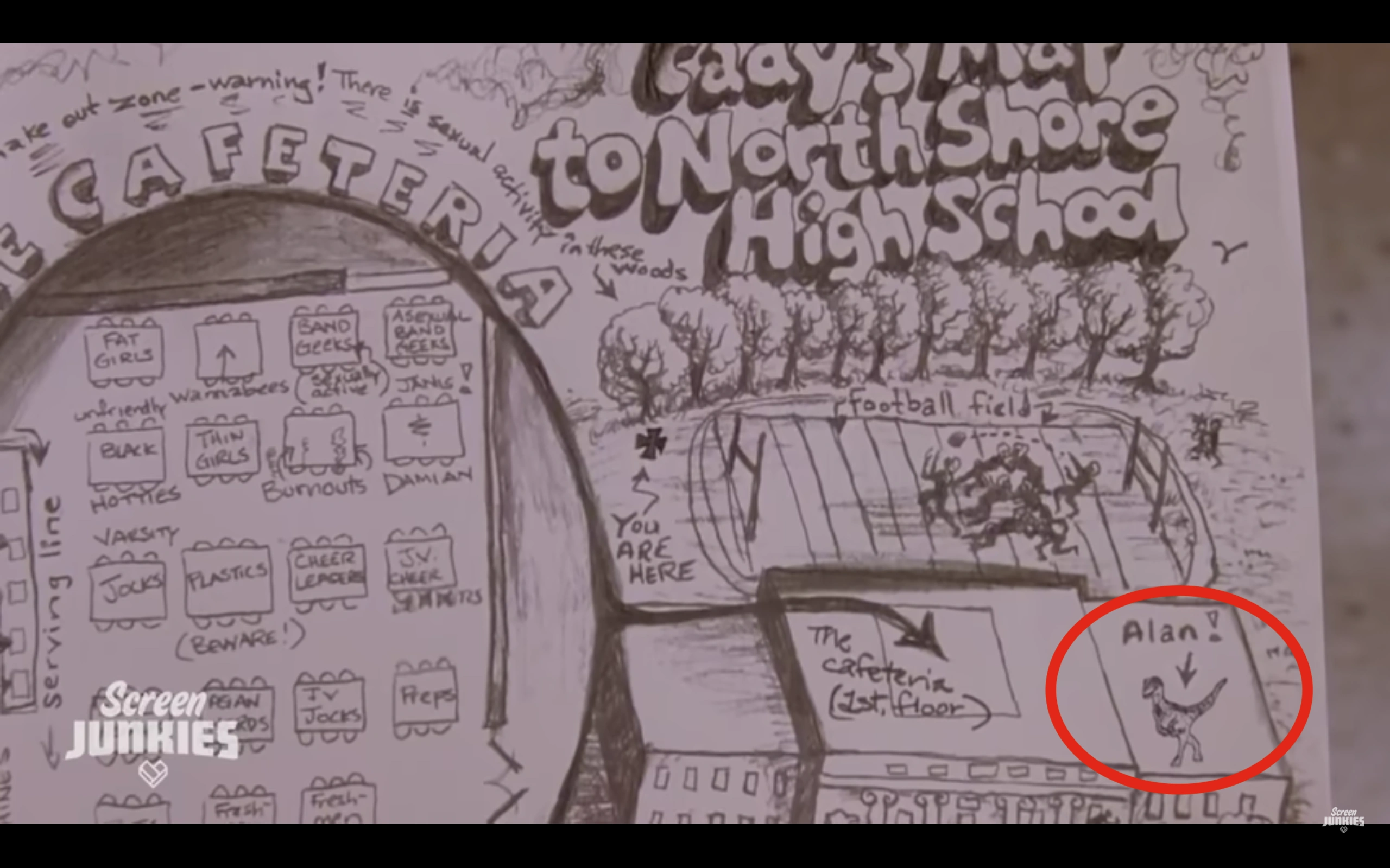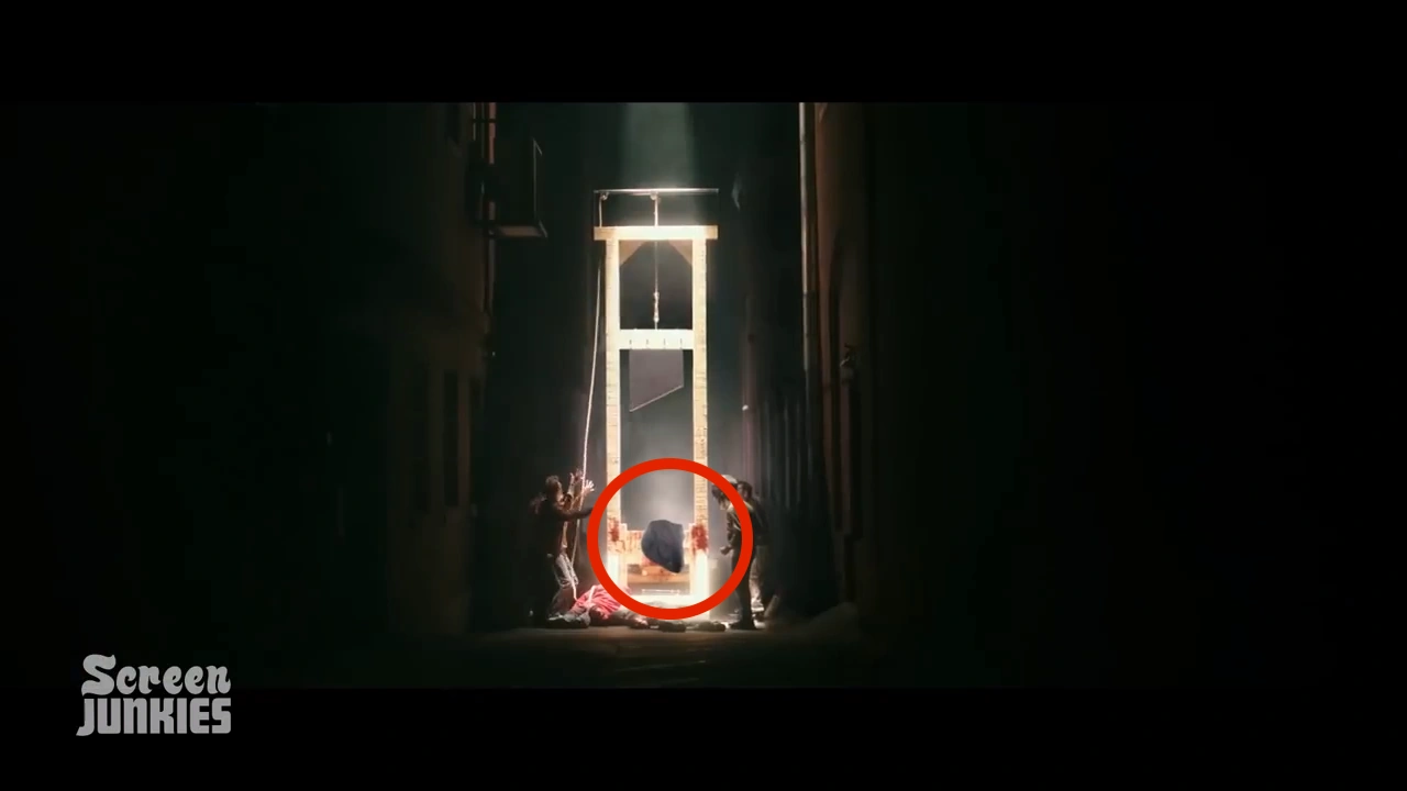 A hidden Alan is form of easter egg, depicting a velociraptor incorporated into the background action of a scene of a completely unrelated Honest Trailer. It usually appears in a comedic way, for example being decapitated by a guillotine during The Purge or his disembodied head on display in Birds of Prey. It also causes Screen Junkies superfans to wet themselves with excitement before immediately commenting with the time code of the hidden Alan to prove that they've found it, even if there are already 10 other comments to the same effect. Hidden Alans appeared in several Honest Trailers during 2018, from Tomb Raider/Pacific Rim: Uprising to Avengers: Infinity War.
